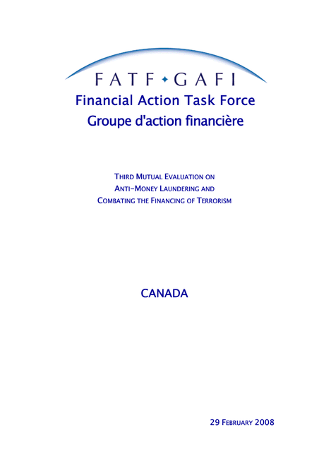 Yes, FATF released its third evaluation of Canada in February 2008, The fourth evaluation of Canada is in process with on-site visits occurring in October and November 2015, and In 2014, FATF recognised that Canada had made significant progress in addressing deficiencies identified in the 2008 report and removed Canada from the regular follow-up process
