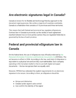 The laws of Canada and each of its provinces explicitly grant electronic signatures the same status as handwritten signatures.