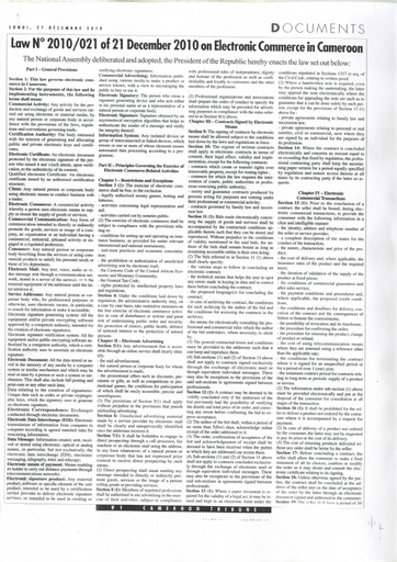 Law no 2010/021 of 21 december on electronic commerce Cameroon