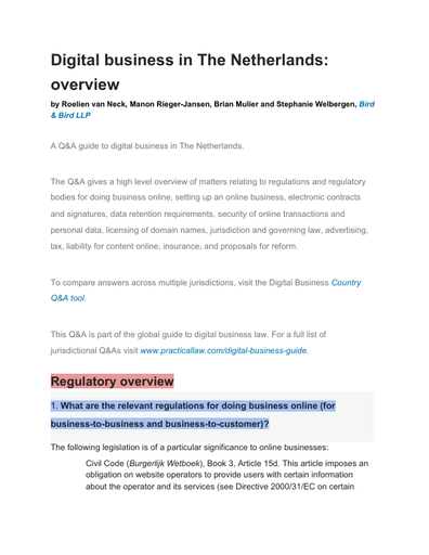 or guidance, except for companies or clients outside the Netherlands.