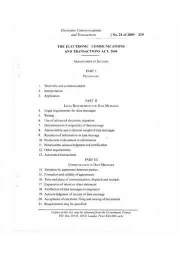 THE ELECTRONIC COMMUNICATIONS AND TRANSACTIONS ACT, 2009